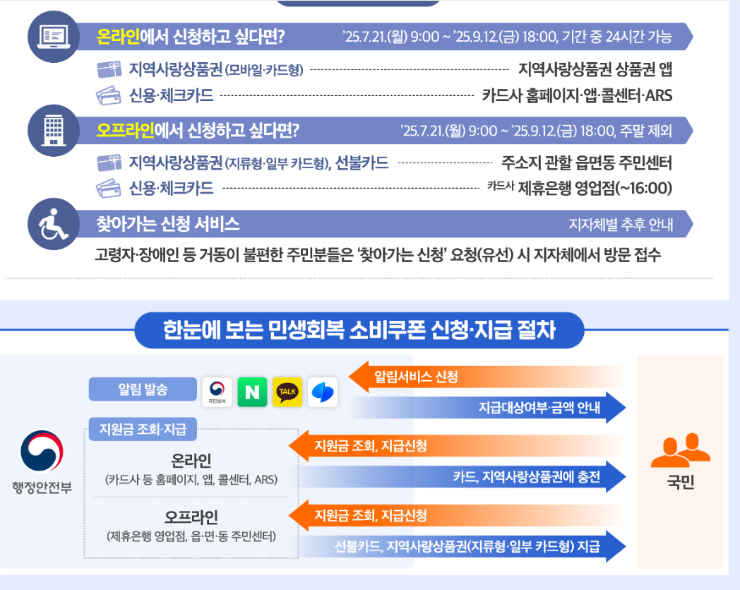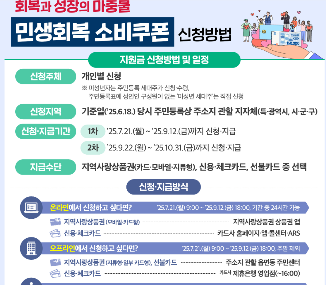 | 1차 | 전 국민 | 7.21〜9.12 | 일반 15만, 차상위 30만, 기초 40만 | 비수도권 +3만 / 농촌 +5만 | |
