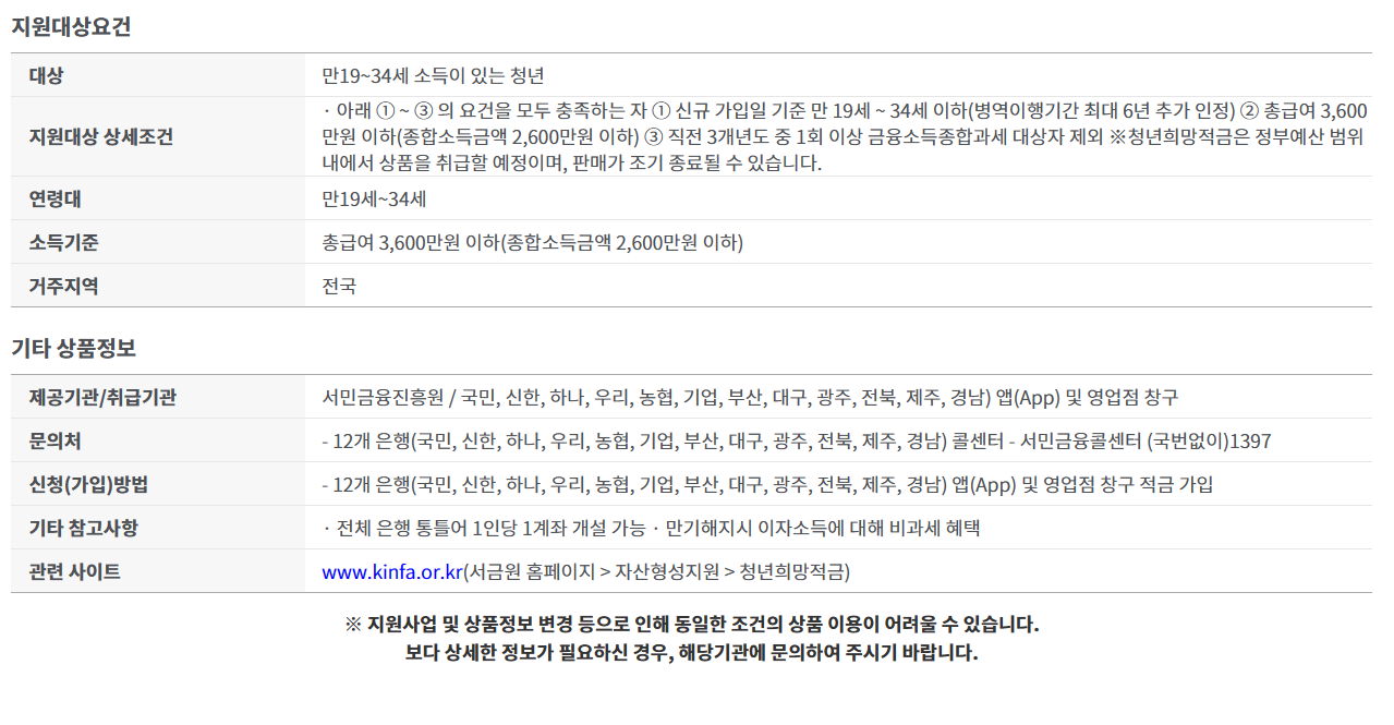 청년희망적금을 신청할 때 주의해야 할 점은 다음과 같습니다: