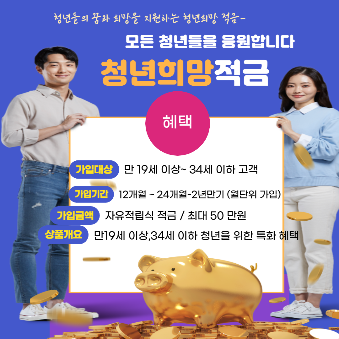 청년희망적금은 저축 상품 중의 하나로, 젊은 세대인 청년들의 미래를 위해 자금을 저축할 수 있는 제도입니다. 일반적으로 은행이나 금융기관에서 제공되며, 정부 정책의 일환으로 특별한 혜택이 부여되기도 합니다.