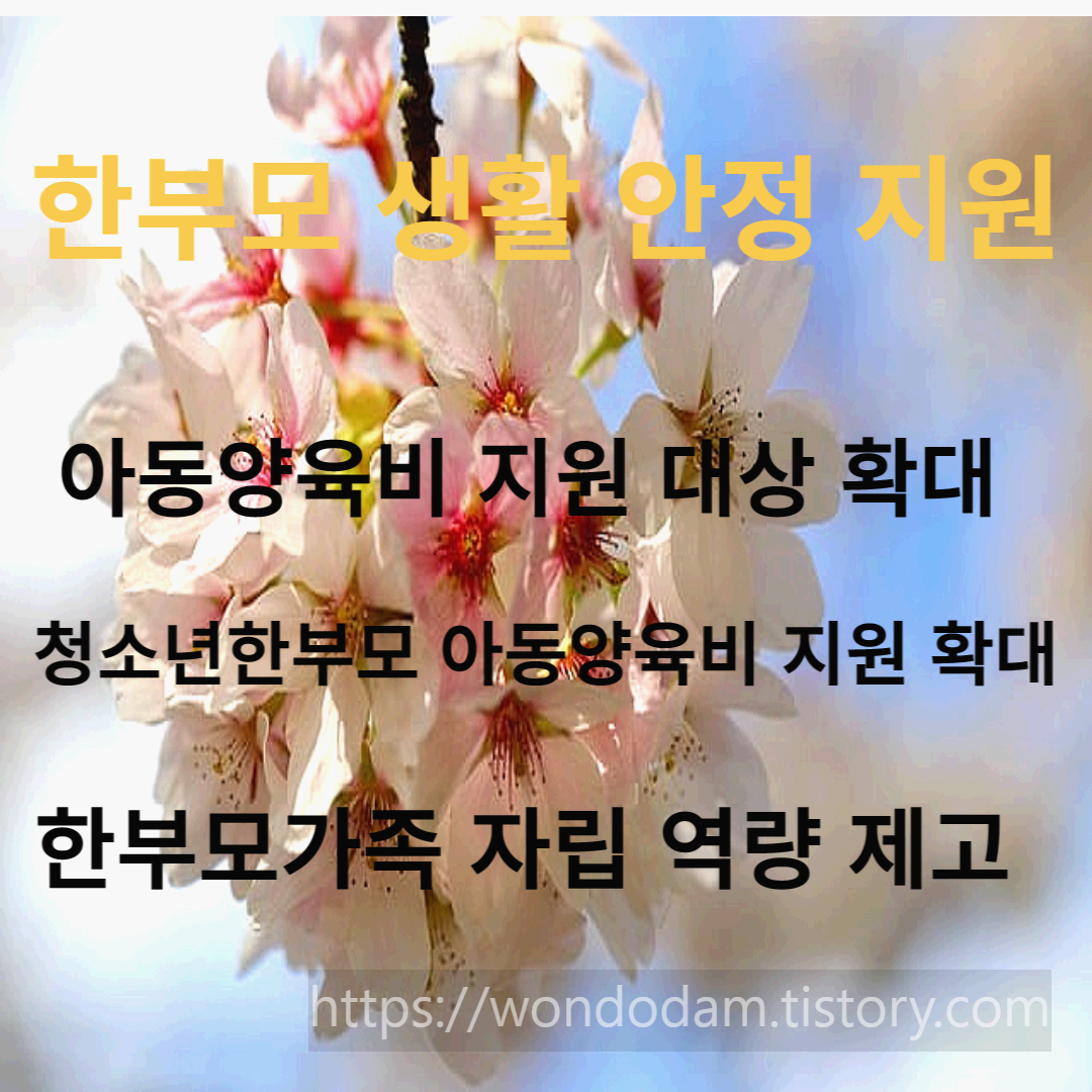 한부모가정 복지시설의 혜택지원으로, 한부모 가족 복지시설 입소 시, 한 가구에 5만 원 지원금이 있다고 합니다.